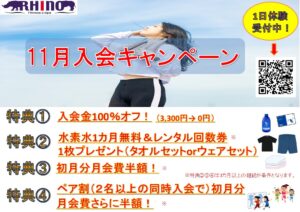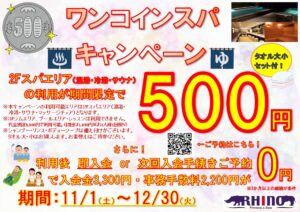 11月入会キャンペーン&ワンコインスパキャンペーン